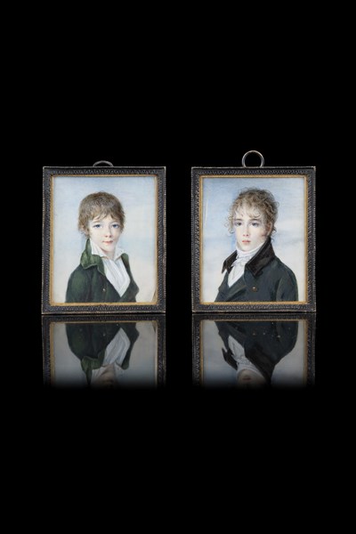 Maestro del secolo XIX "Ritratti di fanciulli" coppia di miniature su avorio (c