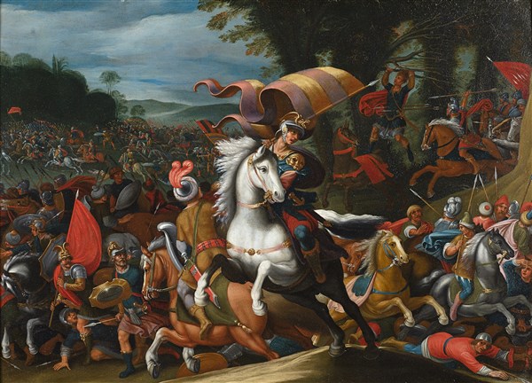 Cerchia di Antonio Tempesta, secolo XVII Scena di battaglia Olio su rame, cm 4
