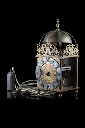 Dial with Roman numerals inside which is engraved the cartouche of the builder Edward Stanton of London (1641-1715) renowned for his lantern clocks.