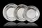 Gruppo di tre alzatine in argento martellato a bordo scanalato. Titolo 800. Argentiere Secchi Sergio, Reggio Emilia (d. max cm 29) (g 1500)