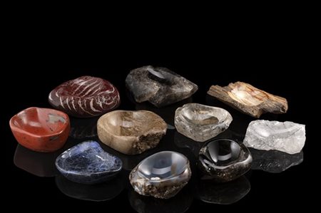 Lotto composto da dieci posaceneri in pietre e quarzi diversi (misure differenti) (difetti)