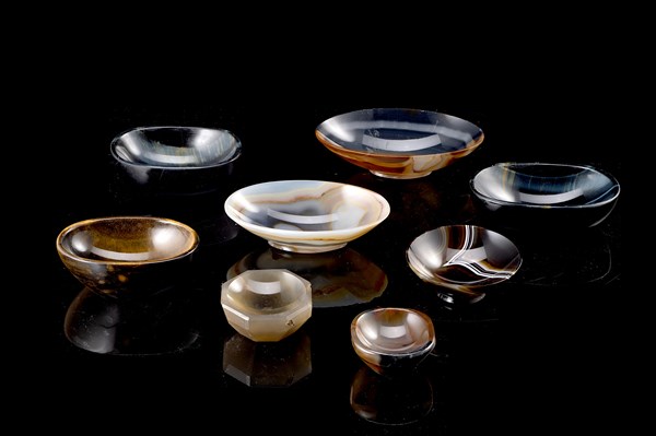Lot comprising eight hard stone bowls (cm max 13x8x3) (defects)