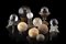 Lotto composto da dieci sfere in cristallo di rocca e minerali vari con basi in legno, metallo e pietra dura (misure diverse) (difetti e mancanze)