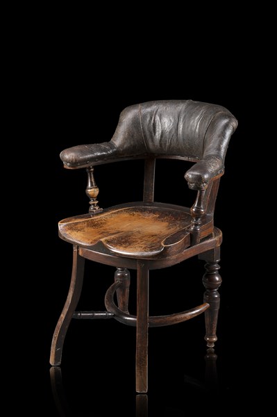 A 19th-century swivel chair with leather backrest and armrests (defects)