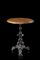 Tavolino con piano in legno di forma tonda su gamba centrale in ghisa modellata