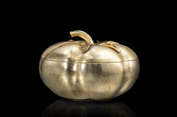 Zuppiera a forma di zucca in vermeille. Titolo 800. Milano. Argentiere B.O.S.S.