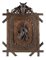 Coppia di pannelli in legno scolpito raffiguranti cacciagione entro cornici int