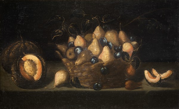 Still life with pumpkins and basket of pears and plums; Still life with basket of plums, figs and cherries, pumpkins, pears and apples