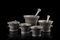 Lotto composto da cinque mortai in bronzo di diversa epoca, tre con pestelli (h
