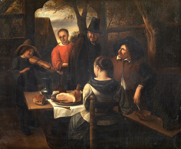 Ignoto del secolo XIX, da Jan Steen Il pranzo Olio su tela, cm 40x49 Etichetta