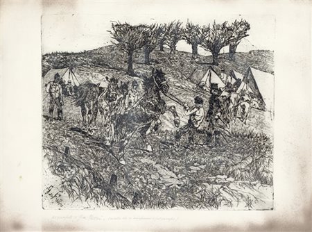Iscritta in basso "Acquaforte di Gio Fattori - cavallo che si impenna - (al campo)"