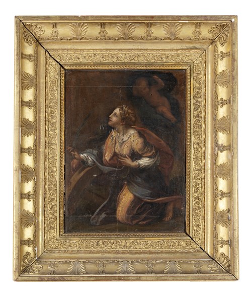 Lotto 908 | Scuola dell'inizio del secolo XIX Santa Caterina d'Alessandria Olio su tavola,