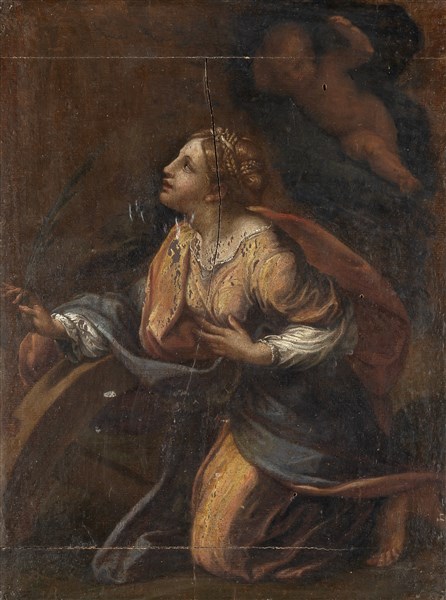 Scuola dell'inizio del secolo XIX Santa Caterina d'Alessandria Olio su tavola,