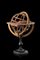Wooden and paper armillary sphere on ebonized pedestal.