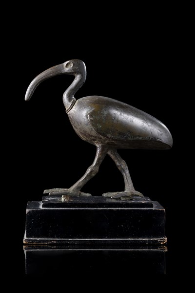 An antique bronze sculpture representing an Ibis (h. cm 13) On a wooden base (minor defects)