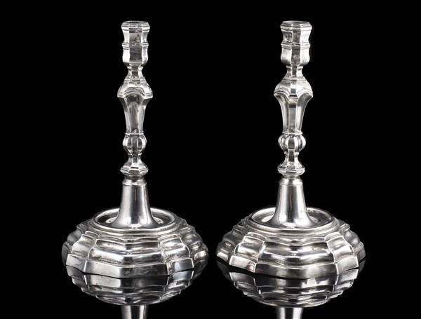 A pair of silver candlesticks. Central Italy, 18th century (h. cm 21) (g 600)