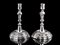 Coppia di candelieri in argento sbalzato con basi polilobate e fusti scanalati.