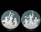 Coppia di grandi piatti in porcellana decorata in monocromia a scene classiche su fondo azzurro. Manifattura Villeroy & Boch, Mettlach, Germania, secolo XX. Firmati, marcati e numerati al retro 7040-7043 (d. cm 52,4)