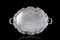 Vassoio biansato in argento con bordo sagomato e corpo cesellato a fiori e volu