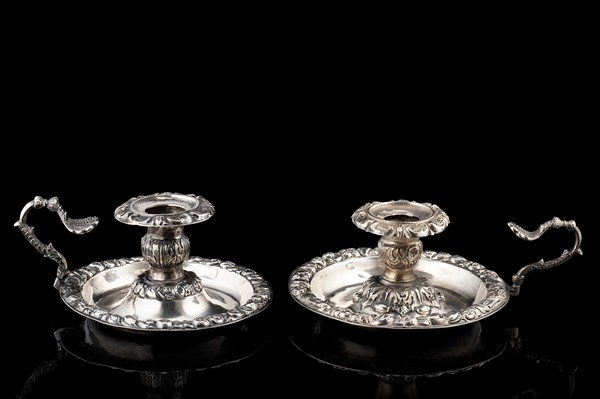 Due bugie in argento decorate a motivi vegetali. Napoli, secolo XIX (g 240) (di