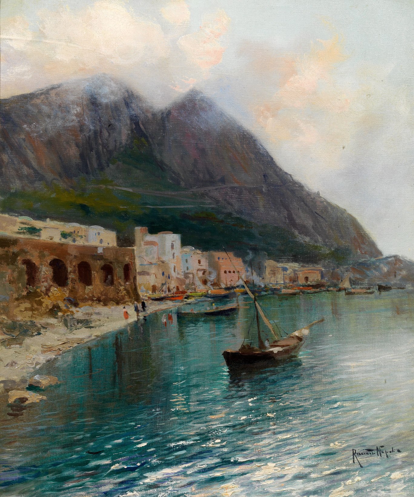 Oscar Ricciardi (Napoli 1864 - 1935) COSTIERA AMALFITANA olio su tela, 58x49...