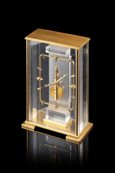 JAEGER LE COULTRE Pendoletta da tavolo modello "Baguette" in ottone e vetro. Ep