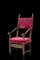 Seggiolone in noce intagliato con braccioli terminanti a ricciolo, finali e fas