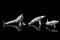 Gruppo di tre pesci snodabili in argento con occhi in pasta vitrea. Punzoni con