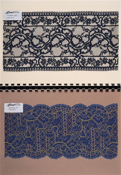 Quaderno di documenti tessili contenente campionario di pizzi - Dentelle de Calais "Collezione autunno - inverno 97/98"