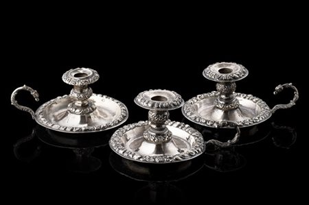 Lotto composto da una coppia di bugie e una di simil decoro in argento con punzoni di Napoli, secolo XIX (g 420) (difetti)