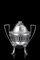 Zuccheriera biansata in argento traforato, anse squadrate e presa del coperchio a rosa a tutto tondo, vaschetta in vetro. Secolo XIX. Punzoni non decifrati (h. cm 15) (g netti 350)