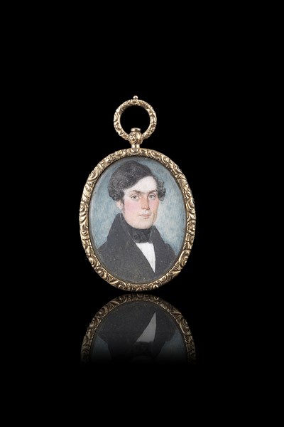 Scuola italiana del secolo XIX "Ritratto di gentiluomo" miniatura ovale (cm 5x4) In cornice in bronzo dorato