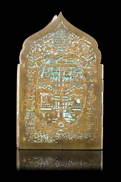 Lotto 1067 | Icona da viaggio quadripartita in bronzo e smalti policromi decorata a scene de