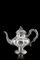 Teiera in argento sbalzato a volute fogliate, ansa mossa con ghiere in avorio,