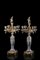 Coppia di candelabri a quattro fiamme in bronzo decorato a smalti policromi all