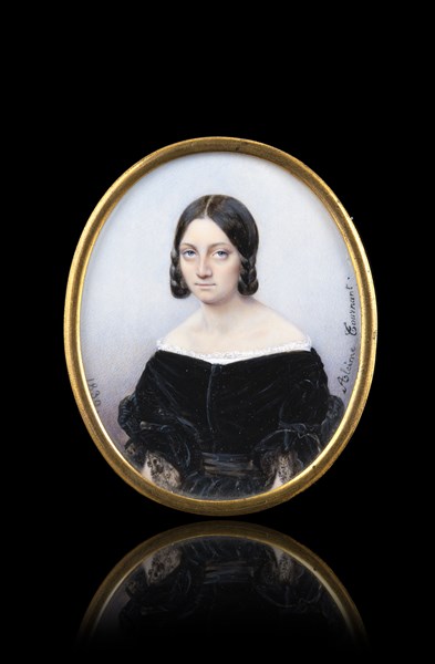 Alcime Tournant "Ritratto di dama dagli occhi azzurri 1839" miniatura ovale su a