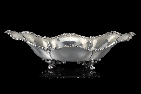 Lotto 1156 | Centrotavola in argento a bordo mistilineo, inciso e traforato a motivi fogliat