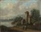 Lotto 1177 | Scuola dell'Italia settentrionale, secolo XIX Paesaggio lacustre con figure Ol