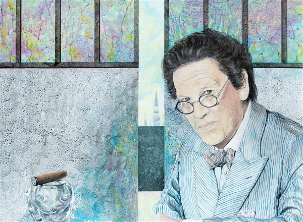 Carmen Panciroli "Ritratto di Philippe Daverio" 2006, tecnica mista su tela. Firmato e datato in basso a destra (cm 35x45) -