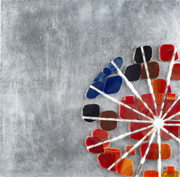 Lotto composto da due composizioni con tessere di vetro (cm 30x30 cad.) e due r