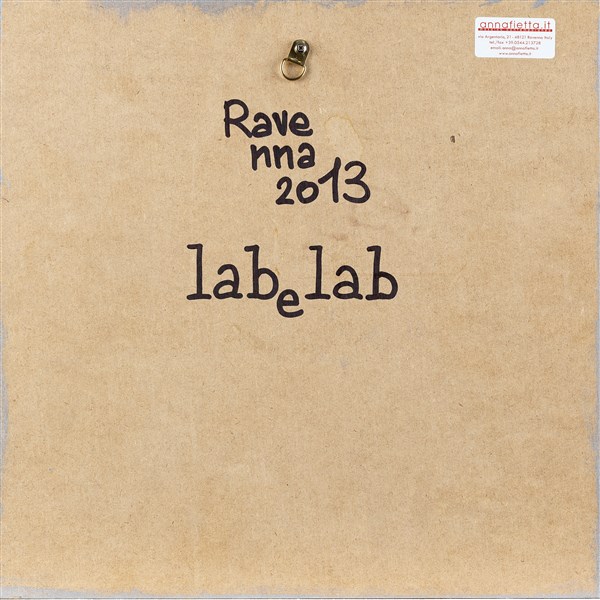 Lot consisting of two compositions with glass tiles (cm 30x30 cad.) and two portraits of Daverio: