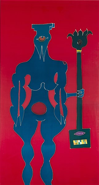 Unknown artist "Untitled" print on cloth. Signed lower right (cm 158x84) Framed