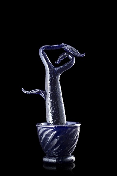 Manifattura di Murano "Pianta grassa" scultura in vetro pulegoso blu opaco. Anni