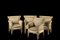 Quattro poltrone da centro in legno laccato e dorato con schienale di forma squ