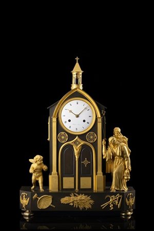 Lorologio rappresenta un interessante iconografia che anticipa di molto la corrente Neogotica che invece sarà un tema ricorrente nelle casse degli orologi di alcuni decenni più tardi