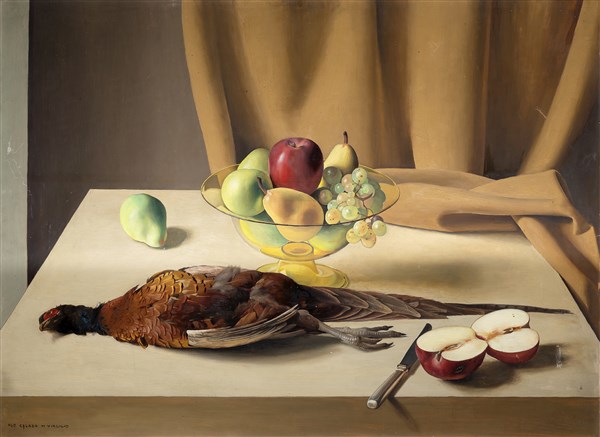 Ugo Celada da Virgilio "Composizione con frutta e fagiano" olio su masonite (cm