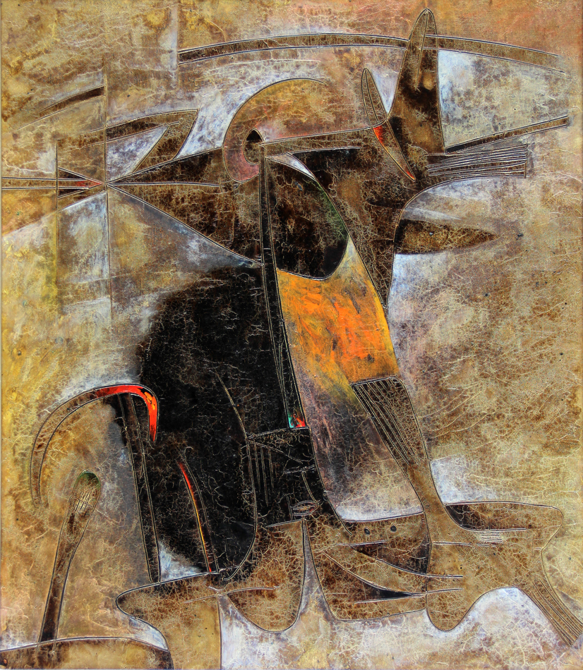 DOVA Gianni, Due figure, 1962, olio e smalto su tela, cm. 70 x 60. Autentica a cura dell'Archivio e catalogo ragionato delle opere di Gianni Dova, con n. 432