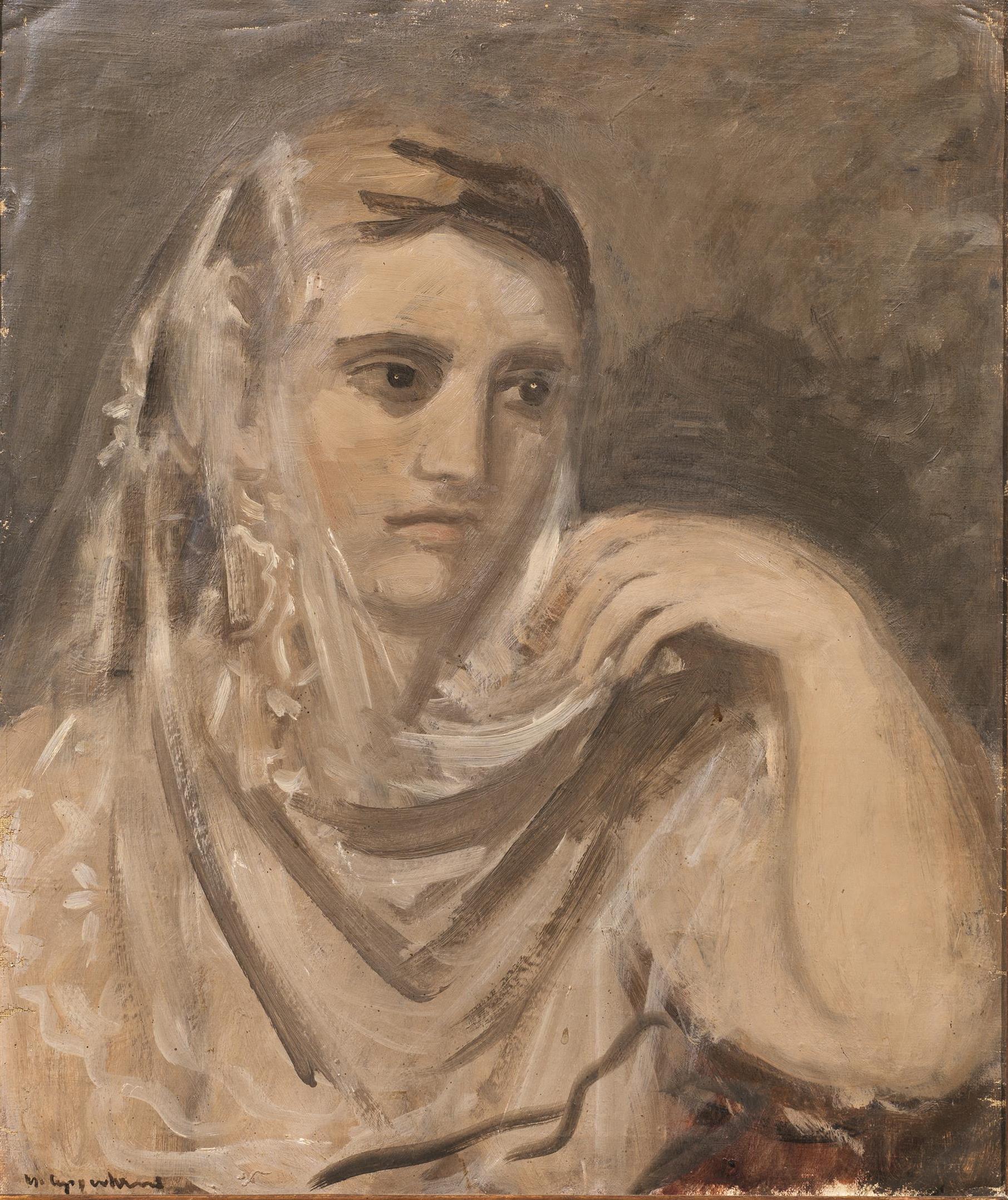 Ugo Capocchini(Barberino Val d'Elsa 1901 - Firenze 1980) DONNA CON VELOolio...