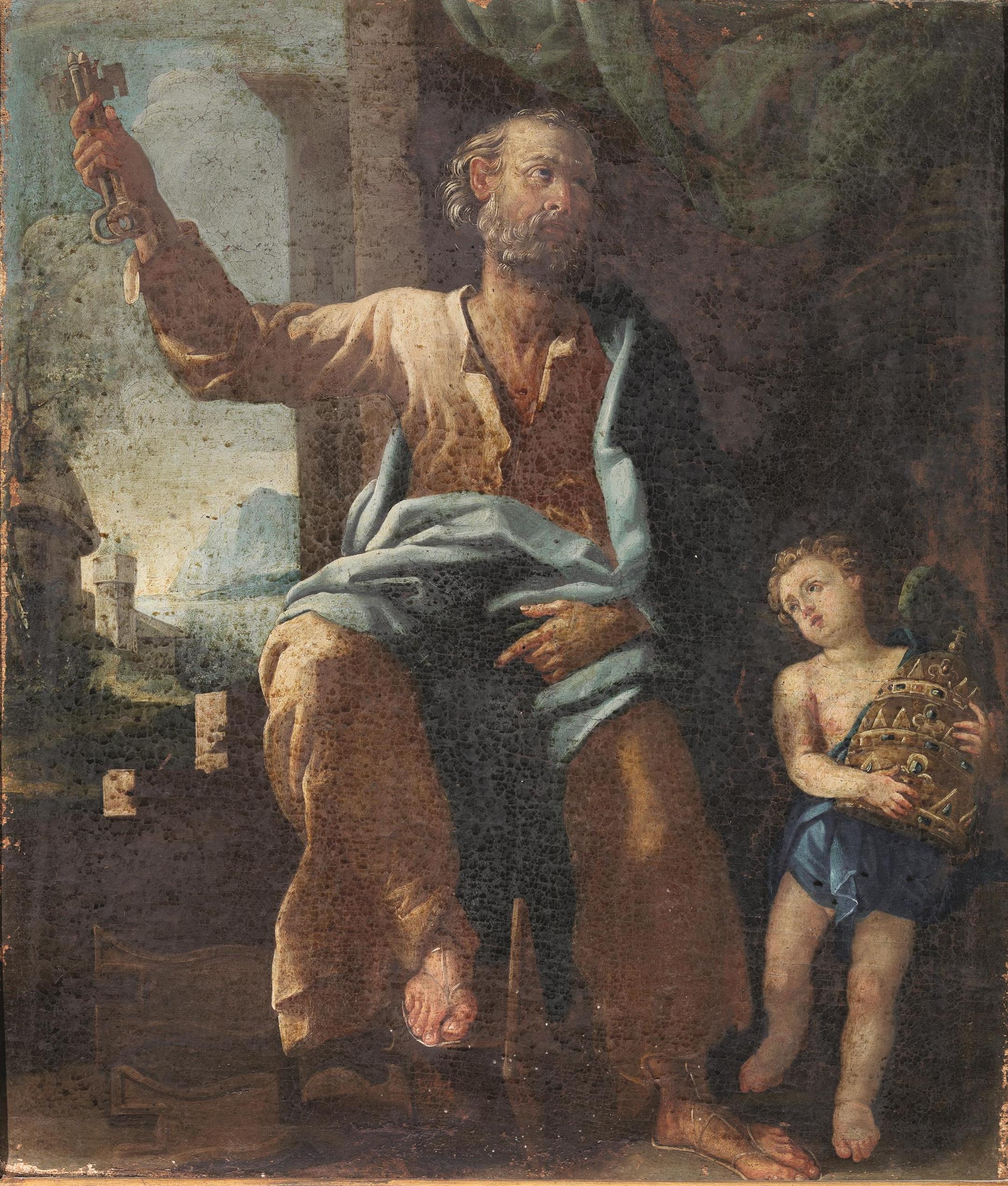 Scuola veneto-emiliana, sec. XVIII SAN PIETRO CON UN ANGELO CHE GLI PORGE LA...
