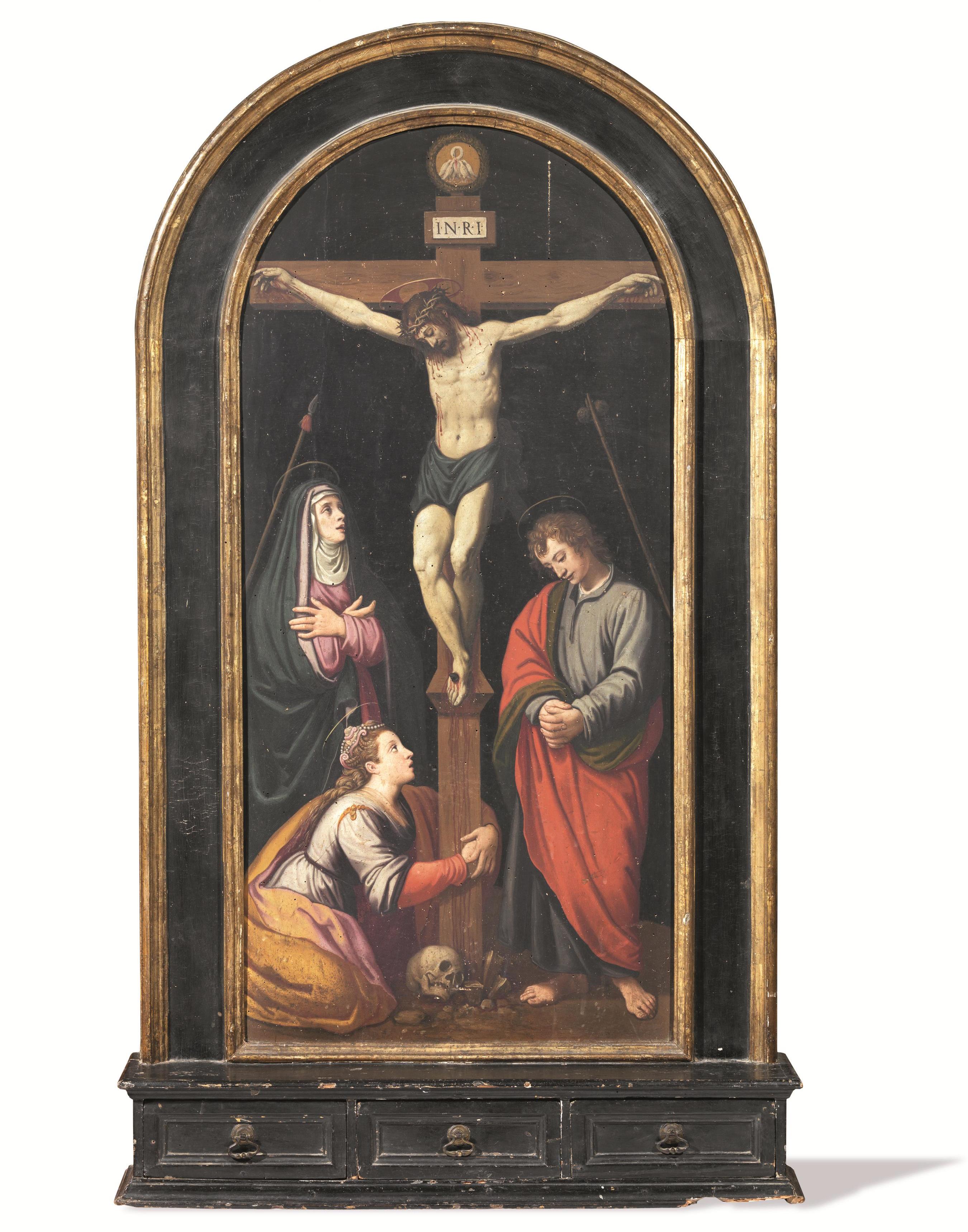 Scuola fiorentina, fine sec. XVI-inizi XVII CRISTO CROCIFISSO FRA LA VERGINE,...